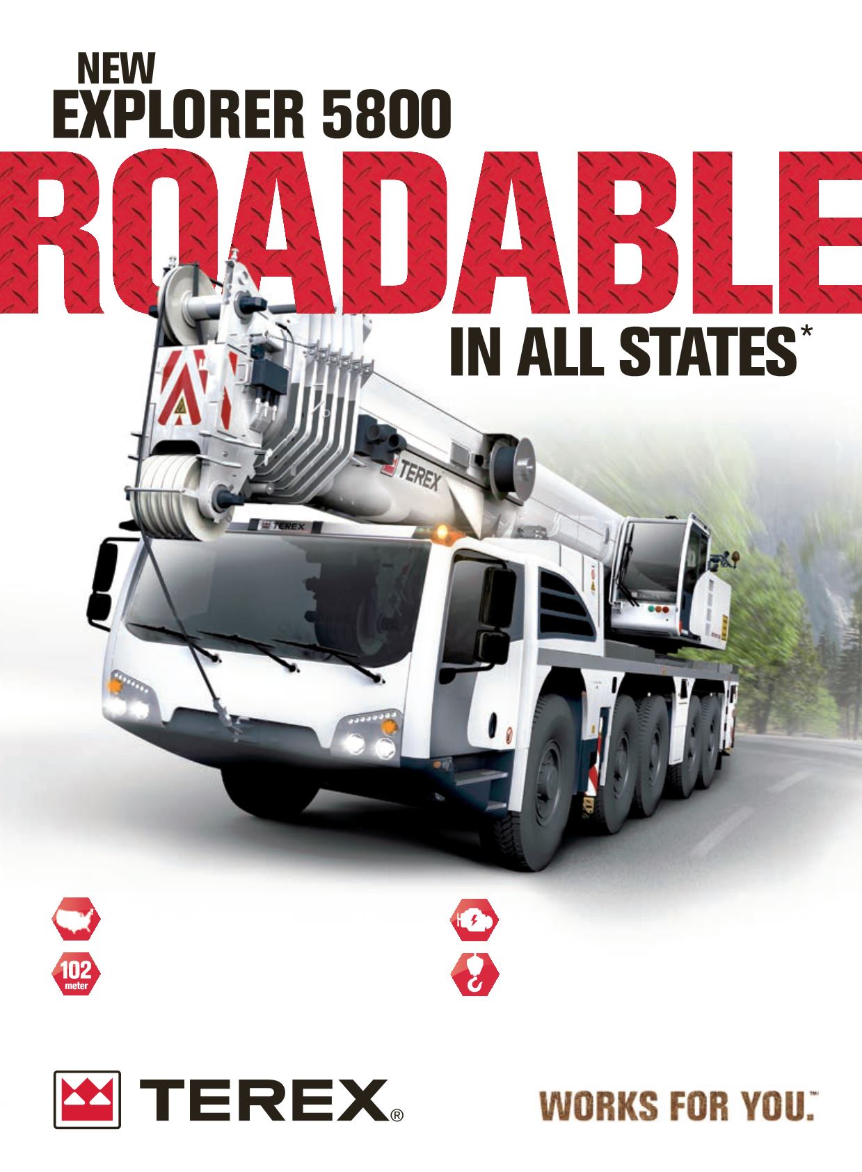 *TheExplorer5800crane is roadable inallUSStates.Forsomestates,easyadaptablesolutions (e.g.dollyoperation,boom-offsolutions)maybe required.©2015TerexCranes.All rights reserved.